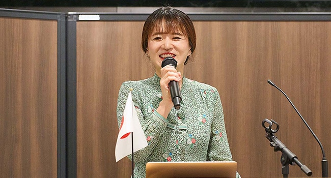 キャスター、戦後問題ジャーナリスト、 慶應義塾大学SFC 研究所上席所員、陸上自衛隊予備自衛官の佐波優子様は、「普段は日本の先人について紙芝居にして全国でお話しする活動をしており、その中で私が最も心を打たれた、皇居勤労奉仕の始まりに関する逸話をご紹介させていただく。皇居勤労奉仕は戦後の皇居、学生たちの自主的な行動からはじまった。明治宮殿をはじめ、皇居は空襲の飛び火による焼失もあり、瓦礫や草も散乱していた。そんな中、1945年12月7日に皇居の坂下門に宮城県栗原郡から60名ほどの若者が現れ、皇宮警察の方に『雑草が茂って荒れていると伺い、掃除や草刈りの手伝いに上京した。食料は自分たちで用意しているので、手伝いをさせてほしい』と依頼した。そこで対応したのが当時の木下道雄侍従次長であり、話を聞くと彼らは別れの水盃も交わしており死ぬ覚悟で来たとのこと。当時は二重橋前の広場で連合軍が行進・訓練を行っており、彼らに捕まってしまう覚悟でやってきたことに心を打たれ、勤労奉仕をしてもらうことにした。彼らは農業の経験を活かし、翌日朝から驚くような手際の良さで作業を行った。木下侍従次長が天皇陛下にお話しされると、午後になって陛下が作業現場へ赴くこととなった。その時の様子を木下氏は、『ザックザックと砂を踏んで一歩また一歩、現場に近づかれるお靴の音は、まさに日本歴史大転換の歯車のきしる音としか思えない。』と表現している。戦争ののちに取り残された同胞の安否や、国民の艱難辛苦を思いやる陛下にとって、彼らにお会いになることは少しでもお気が晴れるだろうと推察したのだ。突然の出来事に大変驚きおずおずと集まってきた青年たちに、陛下は感謝の念と郷土の状況などをご質問され、最後に彼らを激励されその場を去ろうとした。そこで青年たちは自然発生的に君が代を歌い始め、陛下も足を止めた。青年たちはすすり泣きのように歌い、その際の様子は『見ると、真黒な手拭を顔に押しあてた面伏しの姿もある。万感胸に迫り、悲しくて悲しくて唱えないのだ。私も悲しかった、誰も彼も悲しかった。しかし、それは、ただの空しい悲しさではない。何かしら伝い知れぬ大きな力のこもった悲しさであった。今から思えば、この大きな力のこもった悲しさこそ、日本復興の大原動力となったのではなかろうか。』と記されている。木下氏が記した通り、国民とともに歩き語りたいという陛下の思いと、日本再興のために働く青年たちの思いが初めて連なった瞬間だったのではないか。」と、皇室勤労奉仕のきっかけとなる出来事について、情感を込めてお話しされました。