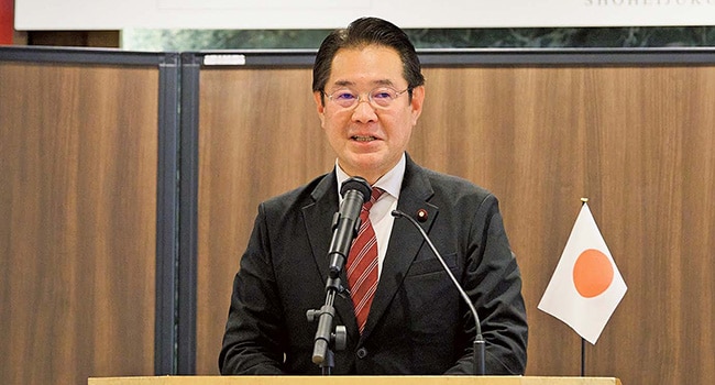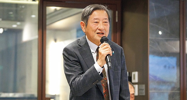 冒頭に株式会社KBM会長の諸橋茂一勝兵塾事務局長は、「先日、加賀片山津温泉佳水郷で行われたアパグループの新年祝賀会にて、勝兵塾月例会動画を視聴した。元谷塾長は第1回の月例会よりかねてから、『この勝兵塾から総理を出す』と仰っていたが、それが現実となり感慨深いものがある。昨年11月の高市早苗総理の台湾有事に関する国会答弁に対し、薛剣在大阪総領事は『首を斬ってやる』と信じられない発言をした。外交官特権がなければ、彼は日本の刑法222条の脅迫罪で逮捕されることは間違いない。それだけではなく、劉勁松アジア局長が金井正彰アジア大洋州局長との会談後、ポケットに両手を突っ込んで金井氏を見下すような態度をとった。これに対し日本は強い抗議を示すべきと考える。これらに代表されるような異常な国、中国だけでなく、北朝鮮やロシアも含め、そうした国に囲まれている状況の中で、わが国がどのようにして領海・領空・領土、そして天皇を中心とする国家体制と国民を守り抜くのか真剣に考えなければならない。少し話題は変わるが、高市総理就任後の迅速な対応についてお話ししたい。公明党の離脱は日本のために良かったと思うが、迅速に日本維新の会との連立合意を取り付けた。その後、ASEANやAPECへ出席し、日米・日韓・日中首脳会談と各国首脳と会談しながら、ガソリン税・軽油引取税の暫定税率廃止を昨年末にあっという間に実現した。それだけでなく、18人の大臣に対して、それぞれ10項目からなる指示書が渡され、これらの指示書は合計するとA4サイズ40枚ほどになったという。こうした迅速な行動ができたのは、就任以前からご自身が総理に就任したらどのような施策をするか、準備をしっかりとされていたからである。本日お越しの石井苗子参議院議員をはじめ、小野田紀美経済安全保障担当大臣、有村治子総務会長、片山さつき財務大臣といった、同じようなスタンス、覚悟を持った女性議員がおられることを頼もしく思うと同時に、是非同じ気概を持った男性議員にも出てきていただきたい。」とお話しされました。